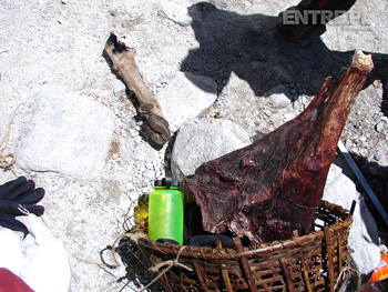 Dziś przybyli portersi, ale jacyś niecodzienni, bo to był chyba chodzący sklep spożywczy. Mieli puszki mięsne, sól, oliwę hiszpańską, różowy papier toaletowy i wielki kawał wędzonego jaka. Jacza wędzonka została zakupiona przez wszystkie kuchnie, kopytko było gratis. Udziec został sprawiedliwie podzielony i już na kolację serwowano smaczne plasterki miękkiego jak na warunki nepalskie mięsa. Dobrze, że nie pytałem, z którego roku był ten jak, choć przy zakupie korciło mnie żeby zapytać.